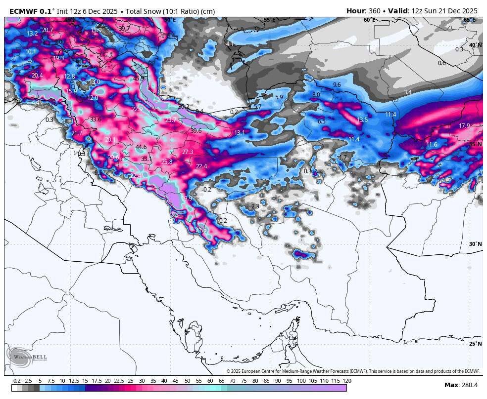 برای روز دوشنبه (۱۷ آذر) نیز این سامانه تقویت می‌شود و بر اساس پیش‌بینی‌ها در نیمه غربی کشور، از جمله استان‌های آذربایجان غربی، آذربایجان شرقی، اردبیل، کردستان، کرمانشاه، ایلام، لرستان، همدان، مرکزی و قم بارندگی رخ می‌دهد.