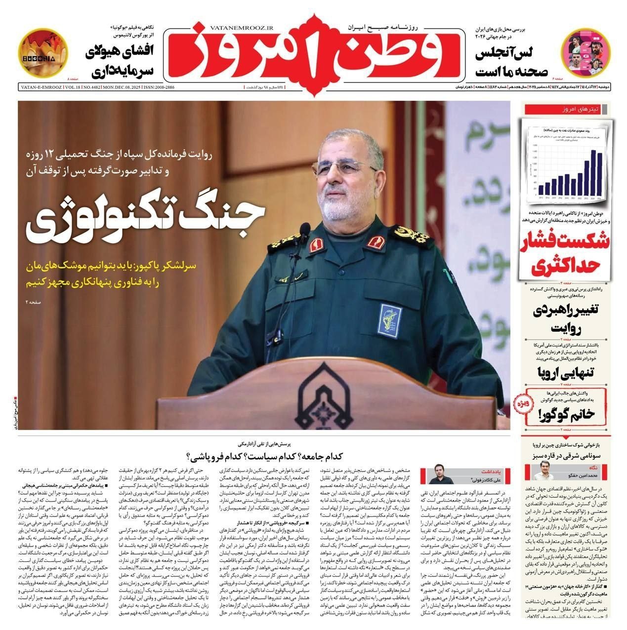 صفحه اول مطبوعات دوشنبه ۱۷ آذر/عبور راهبردی آمریکا از اروپا