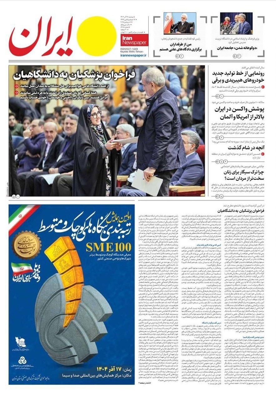 تصاویر منتخب صفحات نخست روزنامههای دوشنبه ۱۷ آذر منتشر شد.